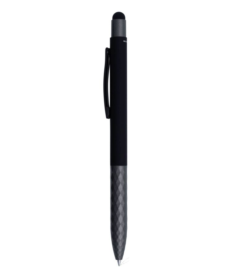 - Presenting our Geometric Stylus Satin Soft Touch Gel Click Recycled Aluminum Pen!