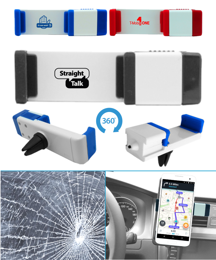 Union Printed - Car Air Vent Mount with Emergency Glass Breaker - 1-Color Logo