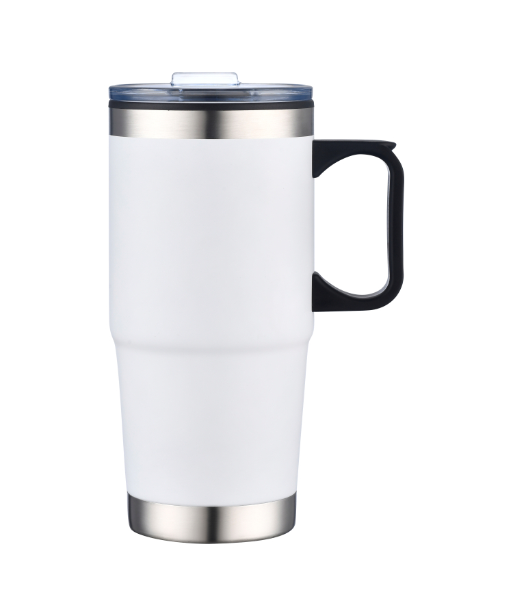 - This durable mug features an easy-grip handle and a spill-resistant slide-action lid, keeping your beverages hot for up to 8 hours and cold for 12 hours.