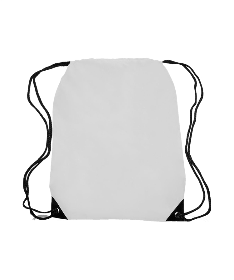 - Presenting our Black Trim Drawstring Bag.