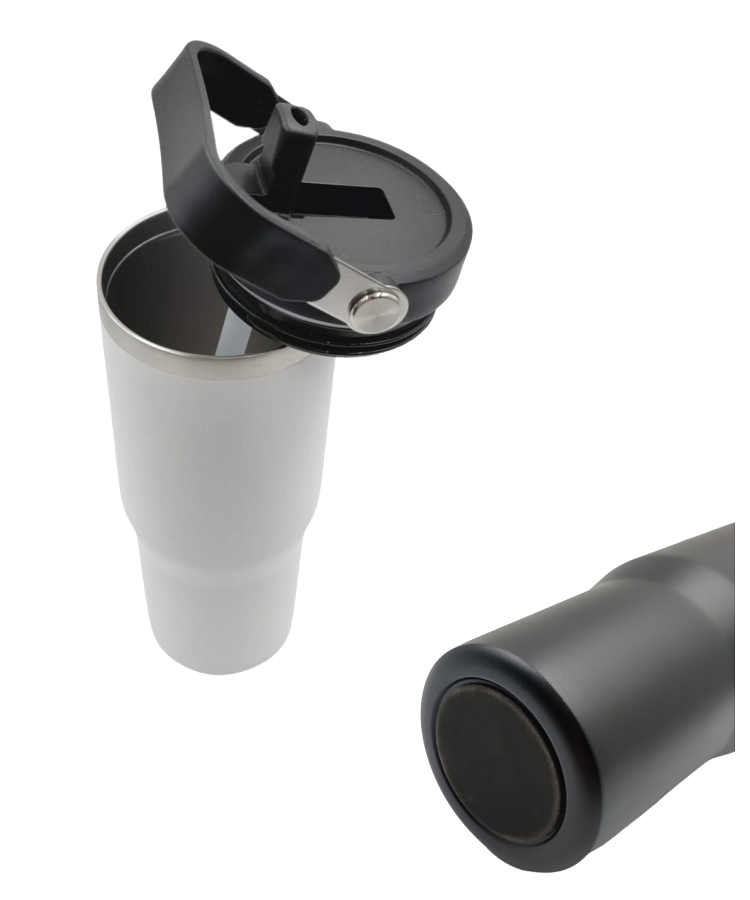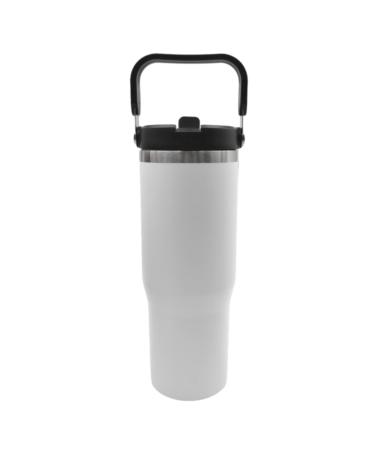 - Stay refreshed on the go with our 30oz Stainless Steel Insulated Mug with Handle & Built-In Straw.