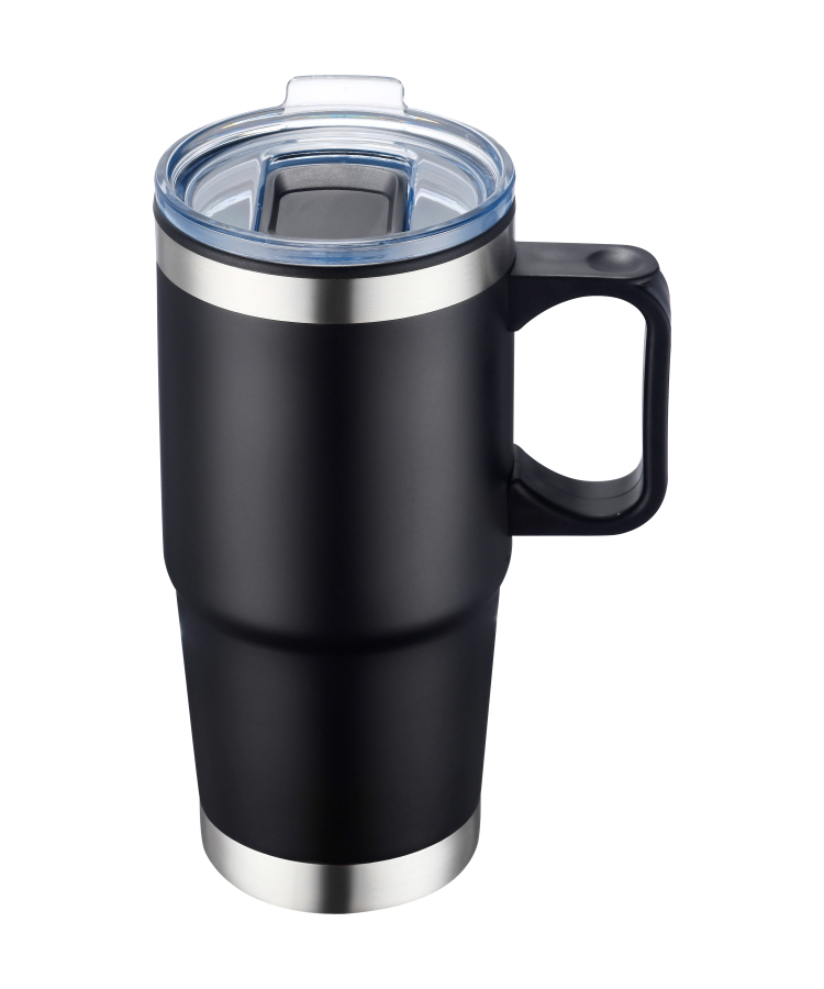 - This durable mug features an easy-grip handle and a spill-resistant slide-action lid, keeping your beverages hot for up to 8 hours and cold for 12 hours.