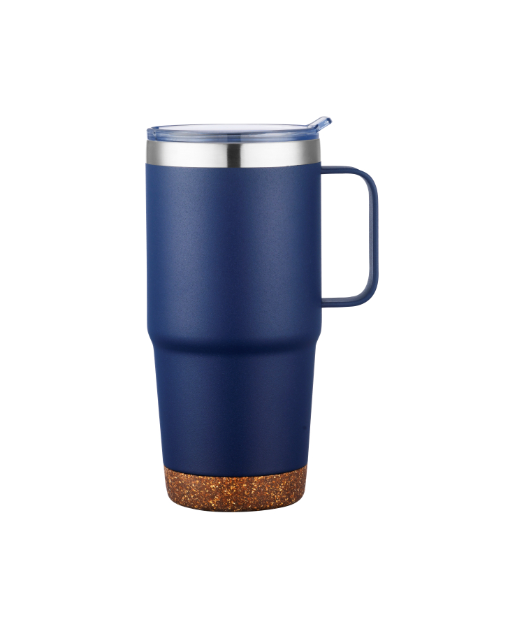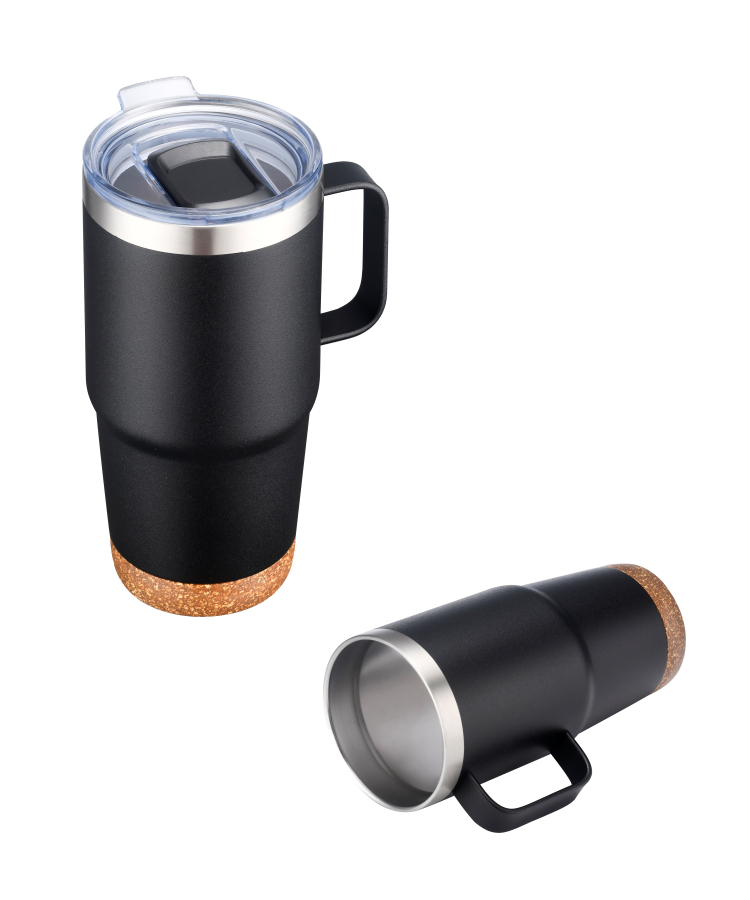 - Stay refreshed on the go with our 24oz Travel Mug with Cork Bottom! Made from durable 18/8 stainless steel with a copper coating, this mug features vacuum insulation to keep your beverages hot or cold longer.