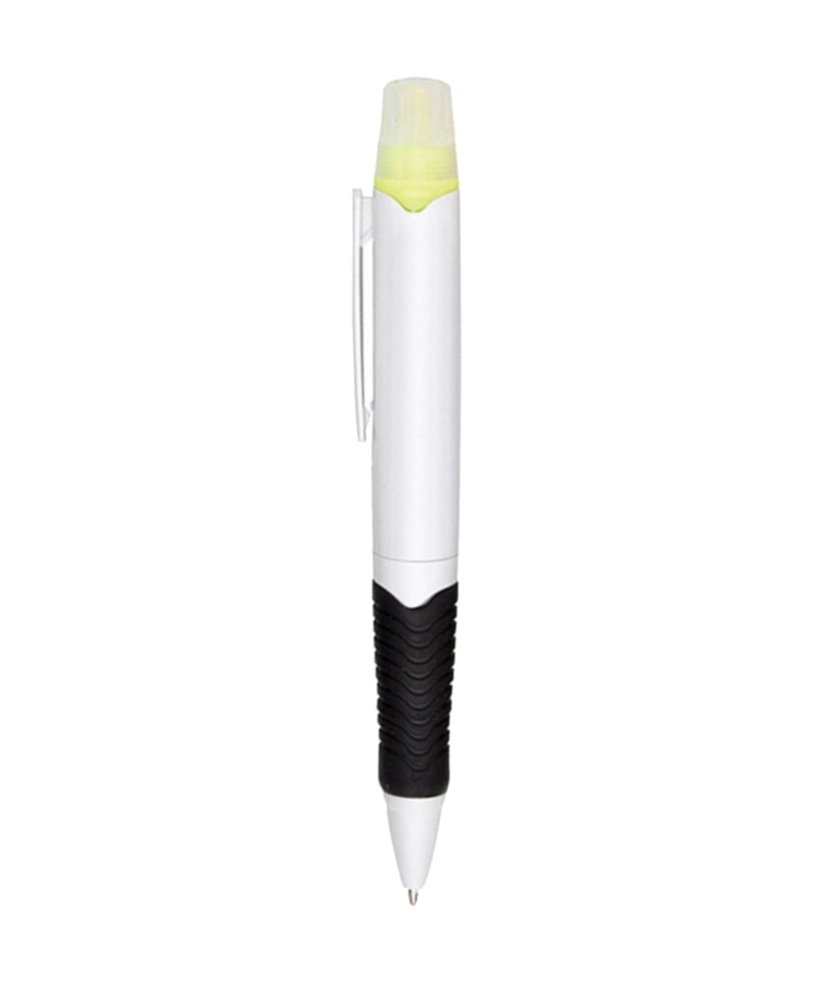 - A practical 2-in-1 writing tool that combines a smooth black ink pen with a bright yellow highlighter.