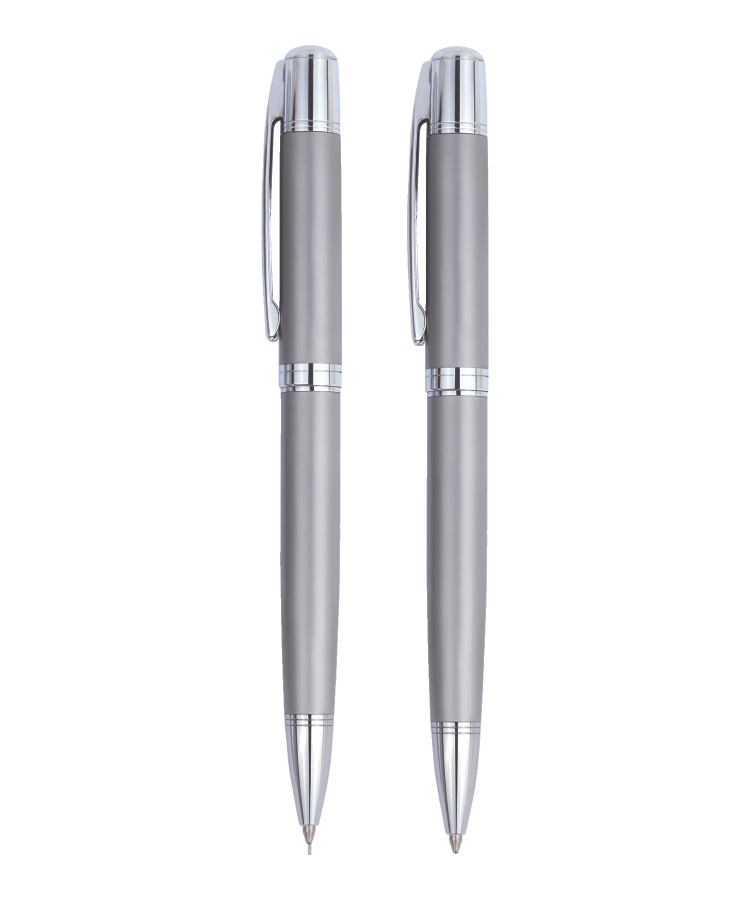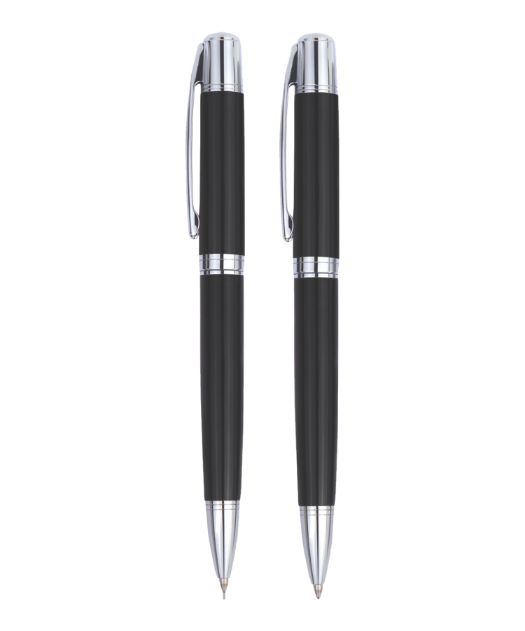 • This sleek and professional pen and pencil set features a durable metal barrel with chrome accents, offering a smooth and stylish writing experience.
