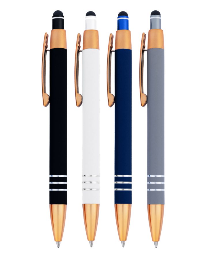 Union Printed - Stevy Stylus Soft Touch Click Metal Pen - Copper Accents