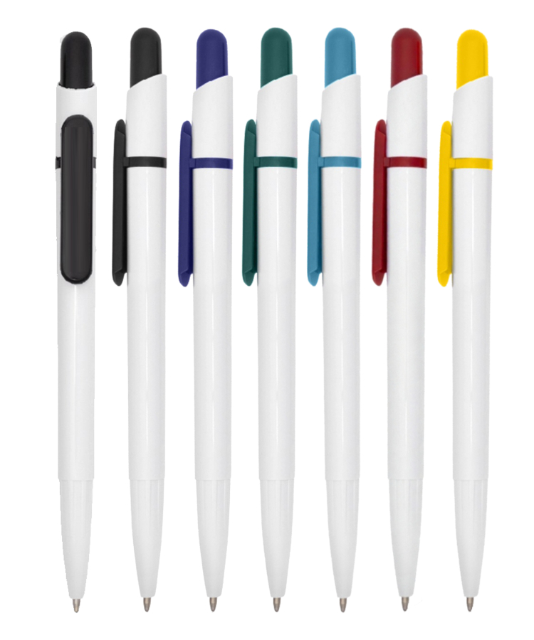 - Its smooth ink flow and well-balanced barrel provide an effortless writing experience, while the clean white body with colored accents makes it an excellent choice for promotions, offices, and daily use.