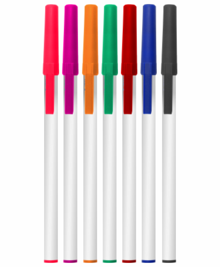 Union Printed - White Stick Pens with Colored Caps - Blue Ink