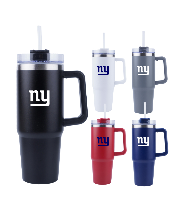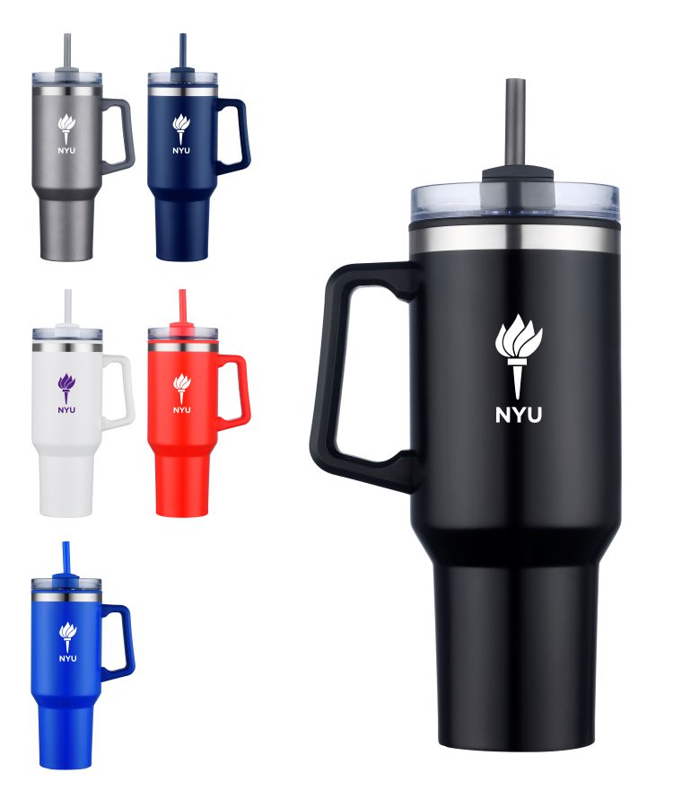 Union Printed - 40 Oz. Double Wall Insulated Travel Mug w/ Handle and Straw