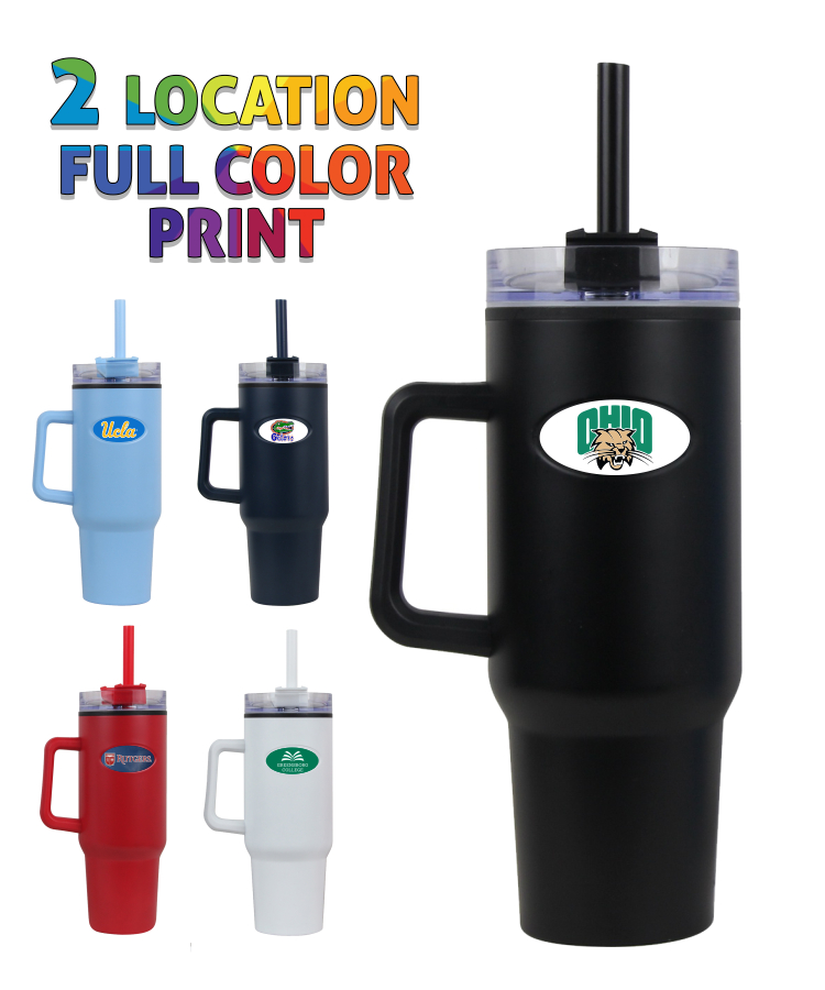 40 oz Inner Plastic Travel Mug w/ Handle and Straw - Full Color Dome