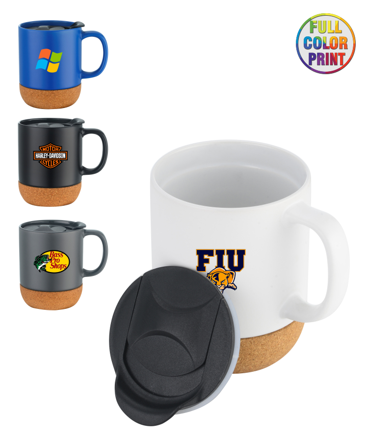Union Printed - 12oz cork base ceramic mug w/ lid - Full Color