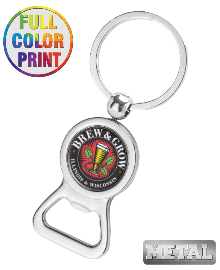Union Printed - Round Metal Keychain with Beer Bottle Opener - Full Color Dome Print