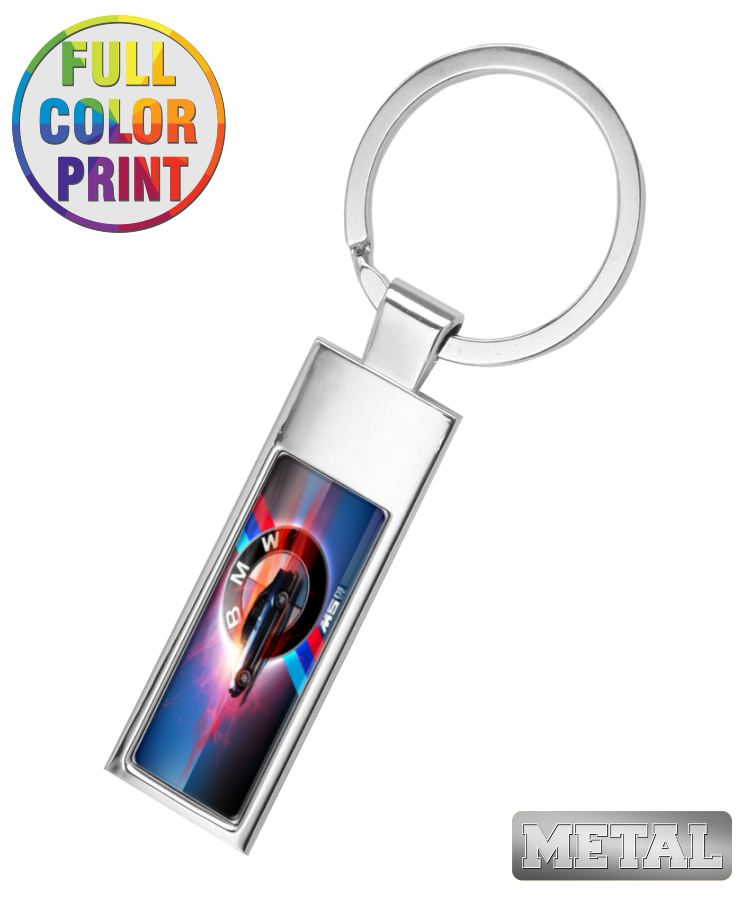 Union Printed - Rectangle Shaped Metal Keychain - Full Color Dome