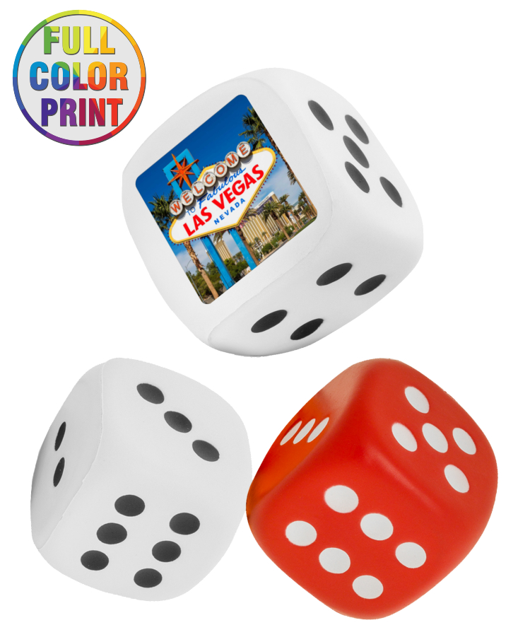 Union Printed - 2.75 inch - Dice Shaped Stress Balls Reliever with Full--Color Logo