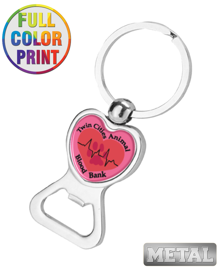 Union Printed - Heart Bottle Opener Keychain with Full Color Dome Print
