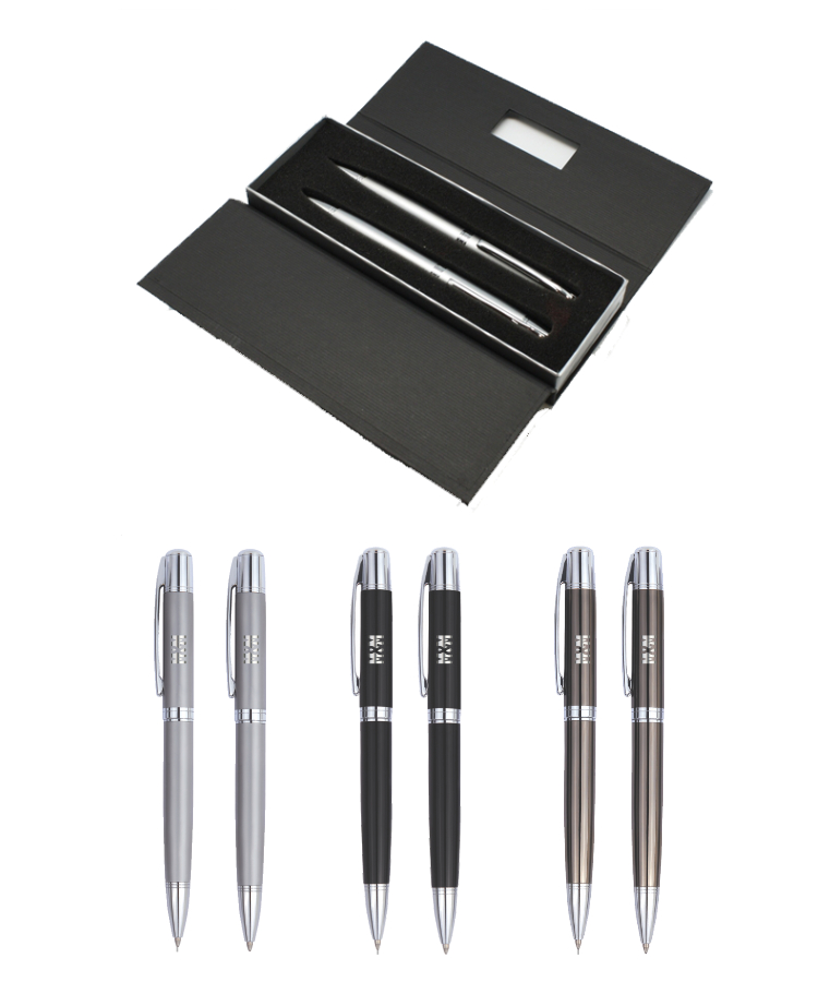 Union Printed - Heavy Metal Barrel Pen & Pencil Set in Box