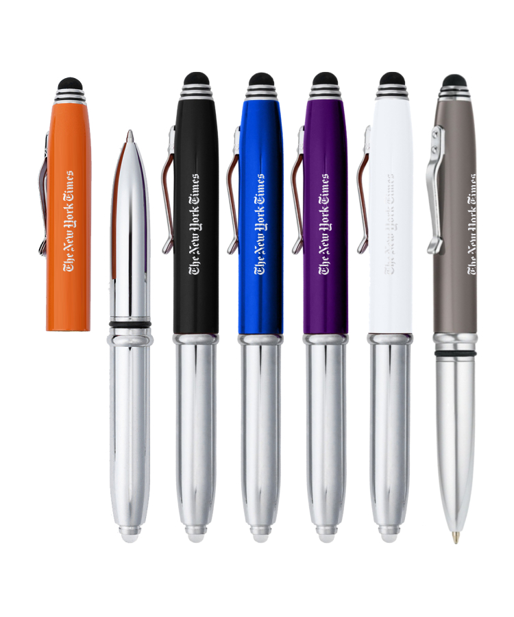 Union Printed - 3 in 1 Flashlight and Stylus Metal Pen