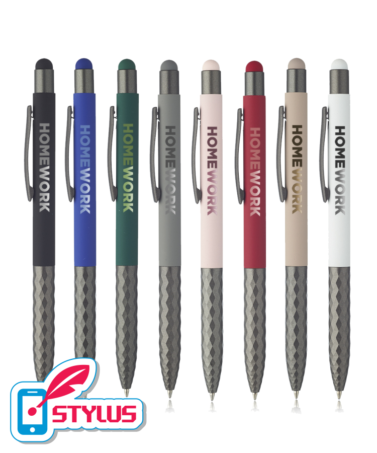 Union Printed - Geometric Stylus Satin Soft Touch Gel Click Recycled Aluminum Pen
