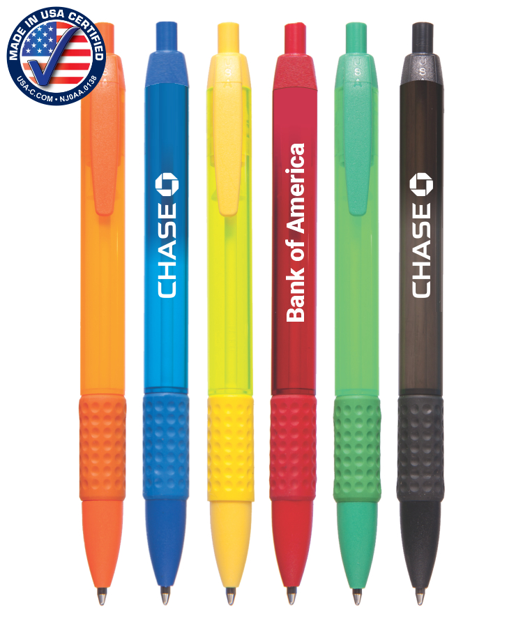 Union Printed - USA Made - Pre-Designed - Wide Body Click Pen with Colored Trim and Rubber Grip - Full Color Logo