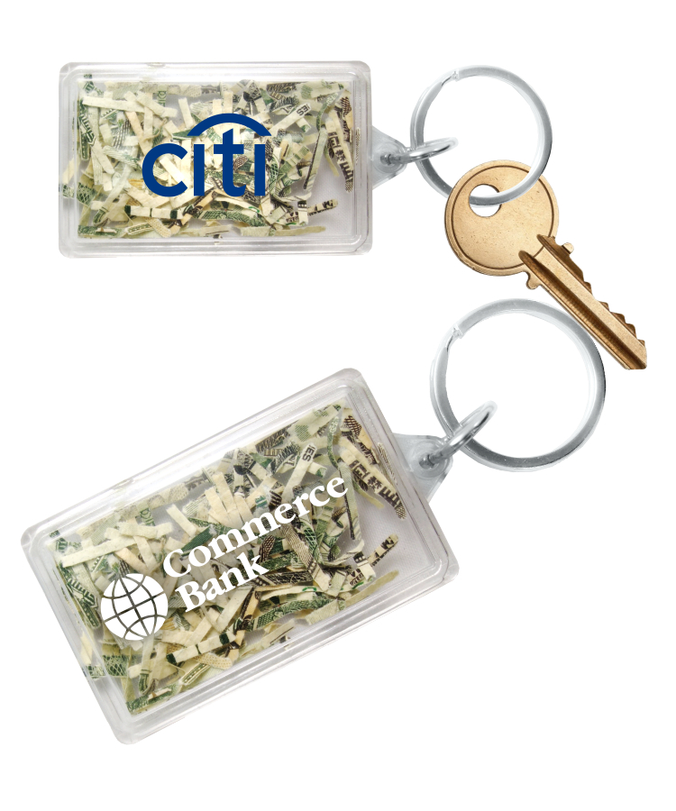USA Made - Rectangle Shaped Key Tag filled with Shredded Genuine US Currency