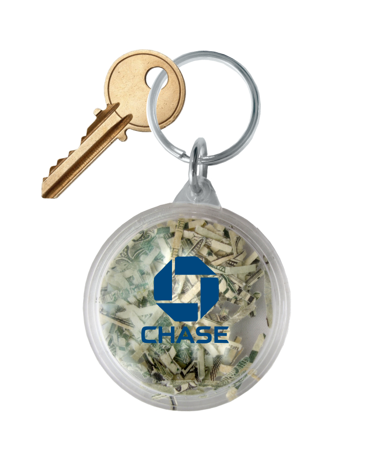 USA Made - Round Shaped Key Tag filled with Shredded Genuine US Currency