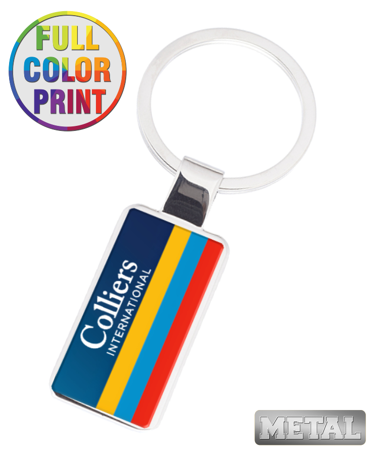 Union Printed - Rectangle Shaped Metal Keychain - Full Color Dome