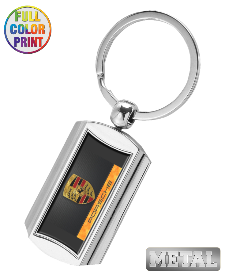 Union Printed - Rectangle Shaped Metal Keychain with Full Color Dome