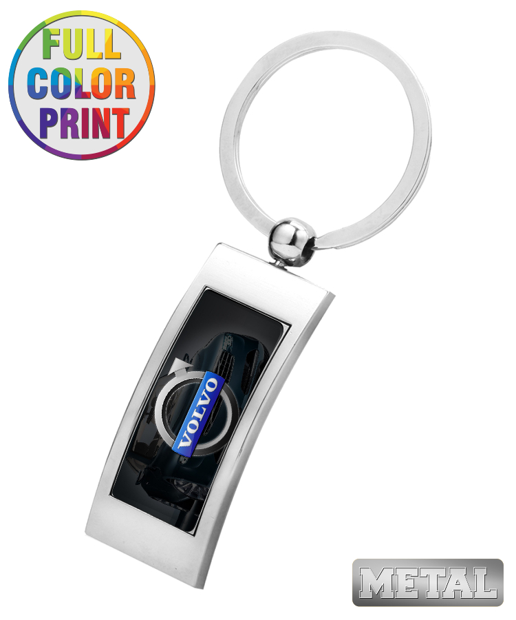 Curved Rectangle Shaped Metal Keychain-Full Color Dome