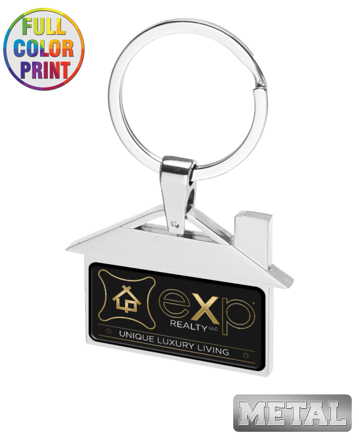 Union Printed - House Shaped Metal Keychain with Full Color Dome Label Print