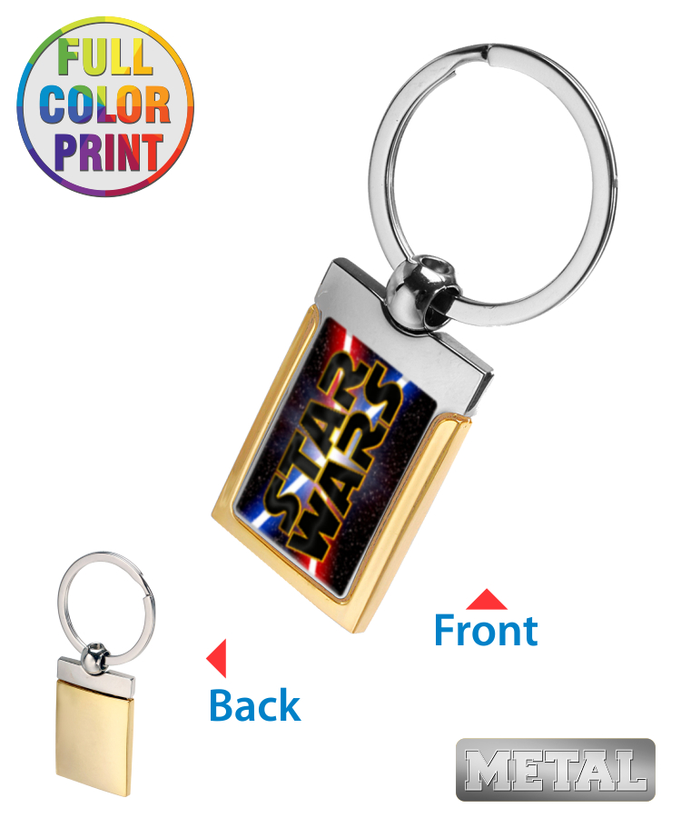 Gold Band Rectangle Shaped Metal Keychain
