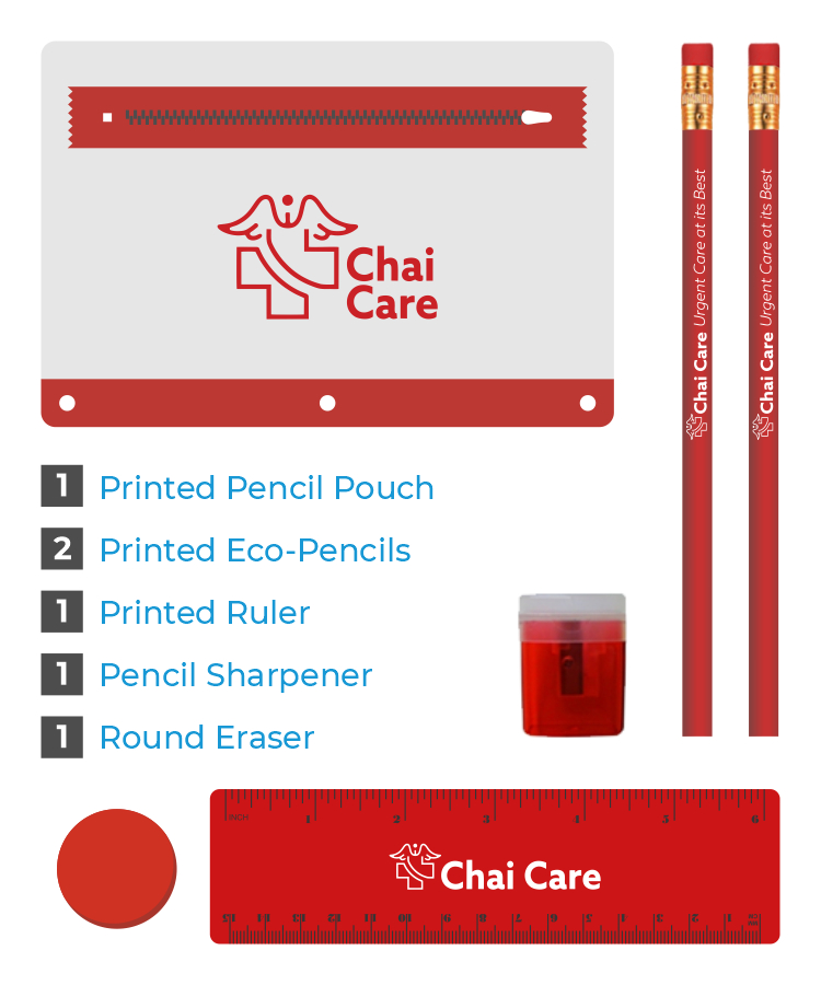 Popular School Kit > Pencil Pouch > Eco Pencils > Sharpener > Ruler > Round Eraser