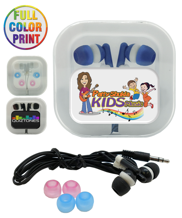 Earphones with Case & Interchangeable Earbud - Full Color